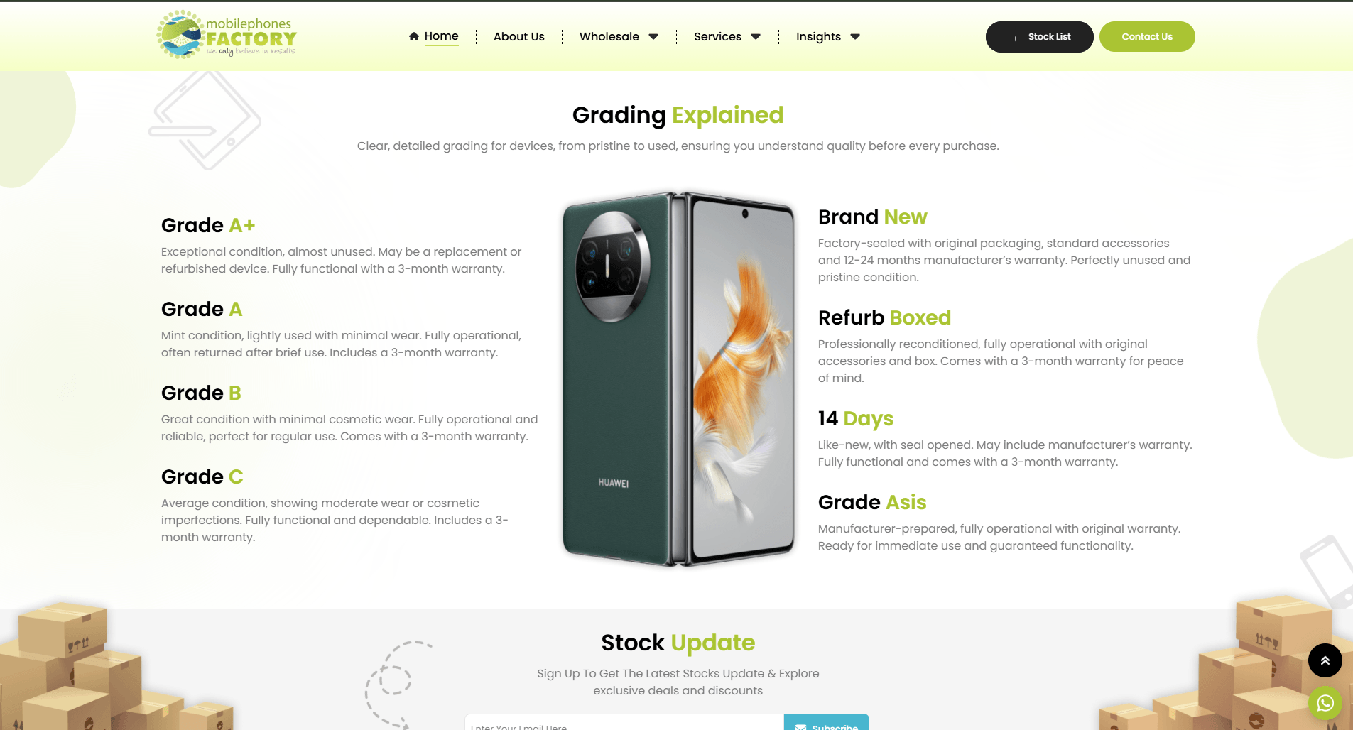 Mobile Phones Factory is a Northern Ireland based wholesale business trading mobile phones and related devices at scale. We developed a complete wholesale platform that allows them to present large volumes of stock in a structured and professional way. The website is built to handle high product turnover, giving buyers clear access to available stock and making it easy to send enquiries directly through the platform.